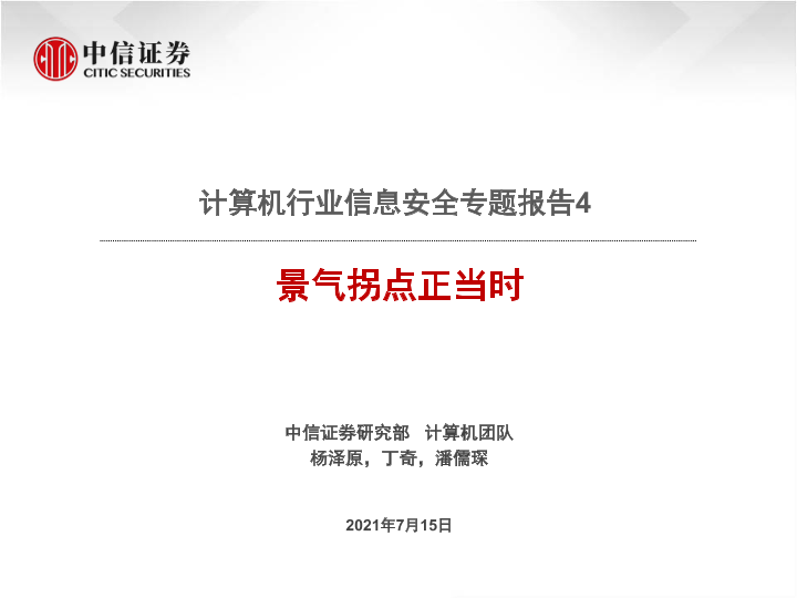【中信证券】【20210715】计算机行业信息安全专题报告4:景气拐点正当时-33页