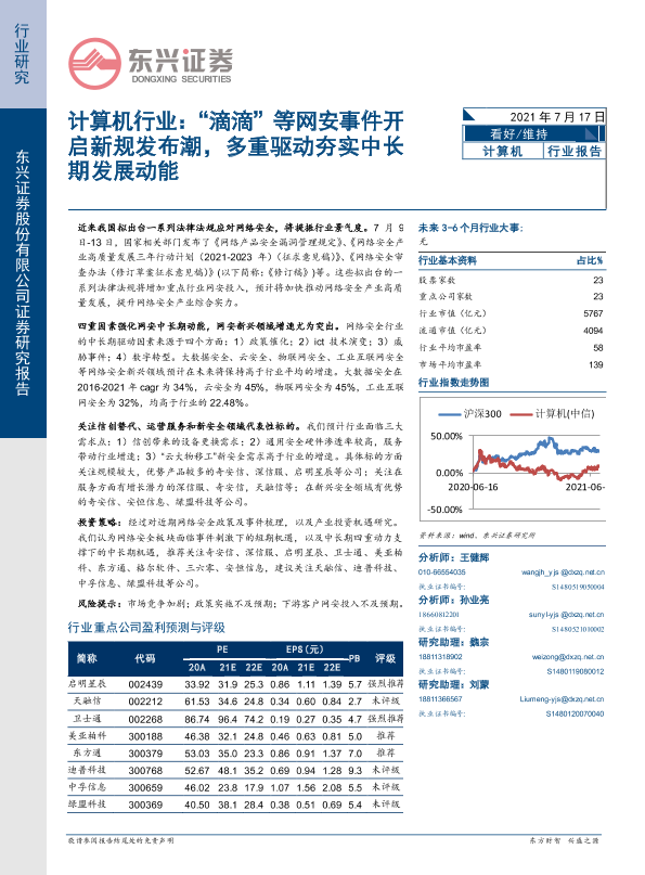 【东兴证券】【20210717】计算机行业:“滴滴”等网安事件开启新规发布潮,多重驱动夯实中长期发展动能-11页