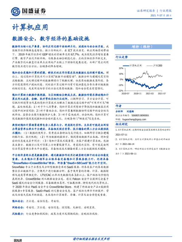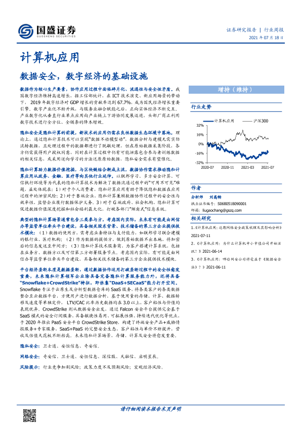 【国盛证券】【20210718】计算机应用行业周报:数据安全,数字经济的基础设施-14页
