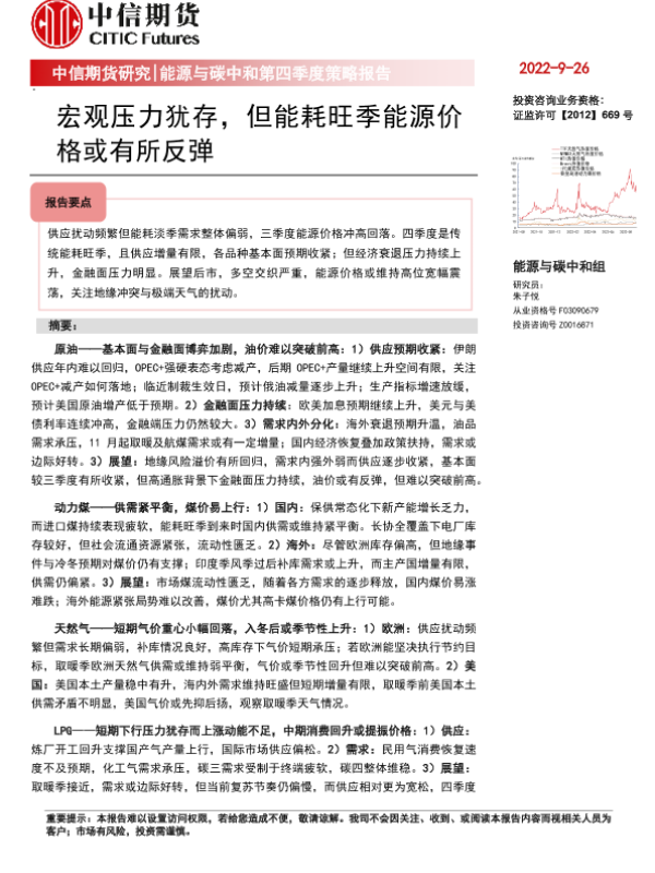 【中信期货】【20220926】能源与碳中和第四季度策略报告:宏观压力犹存,但能耗旺季能源价格或有所反弹-43页