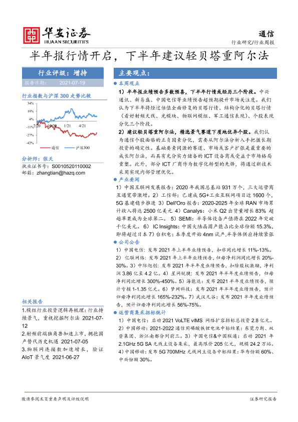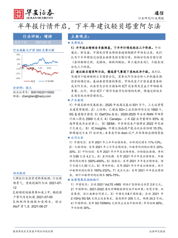 【华安证券】【20210719】20210719-华安证券-通信行业周报:半年报行情开启,下半年建议轻贝塔重阿尔法-19页
