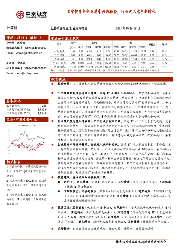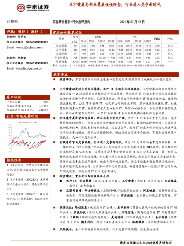 【中泰证券】【20210719】卫宁健康与创业慧康强强联合,行业进入竞争新时代-2页