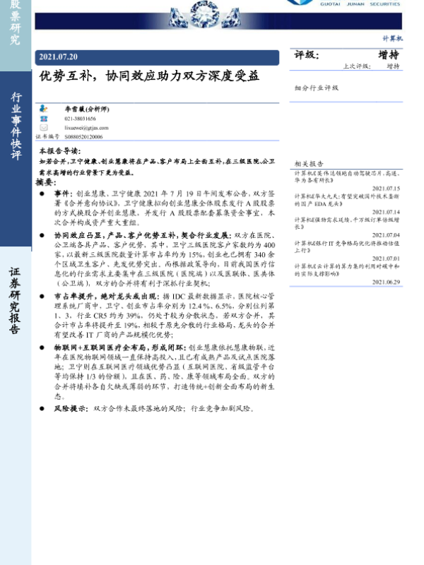 【国泰君安证券】【20210720】计算机行业事件快评:优势互补,协同效应助力双方深度受益-10页