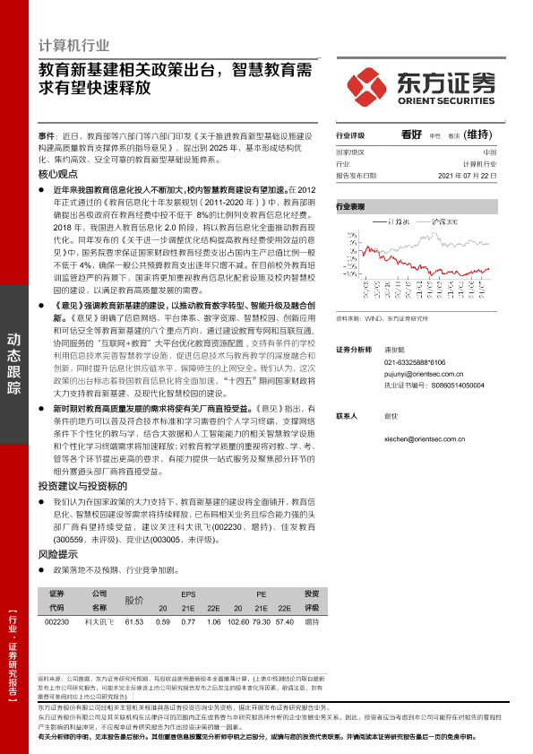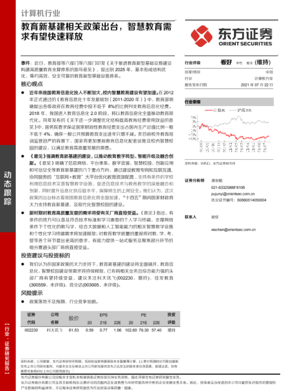 【东方证券】【20210722】计算机行业:教育新基建相关政策出台,智慧教育需求有望快速释放-3页