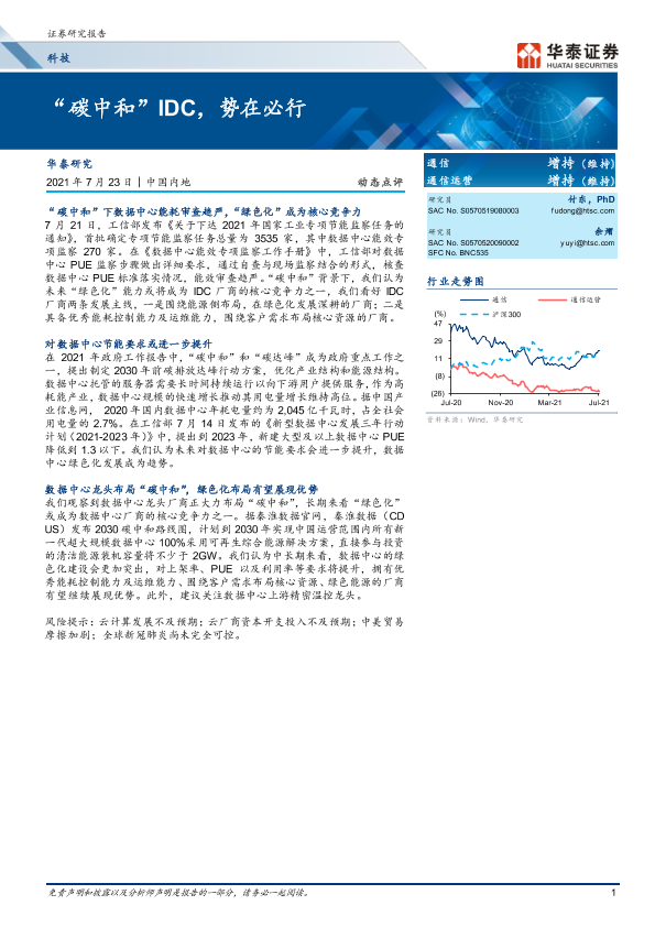 【华泰证券】【20210723】通信:“碳中和”IDC,势在必行-4页