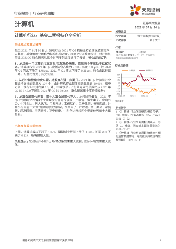 【天风证券】【20210724】计算机行业研究周报:基金二季报持仓全分析-8页