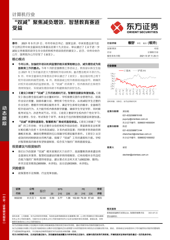【东方证券】【20210725】计算机行业:“双减”聚焦减负增效,智慧教育赛道受益-3页