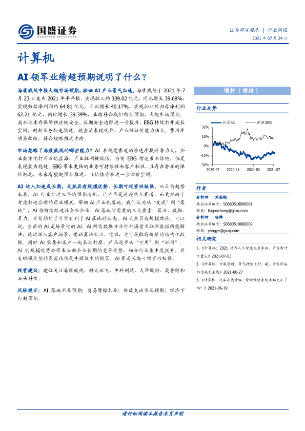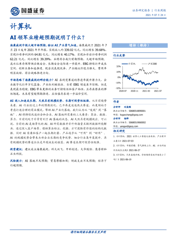 【国盛证券】【20210724】计算机行业周报:AI领军业绩超预期说明了什么?-20页