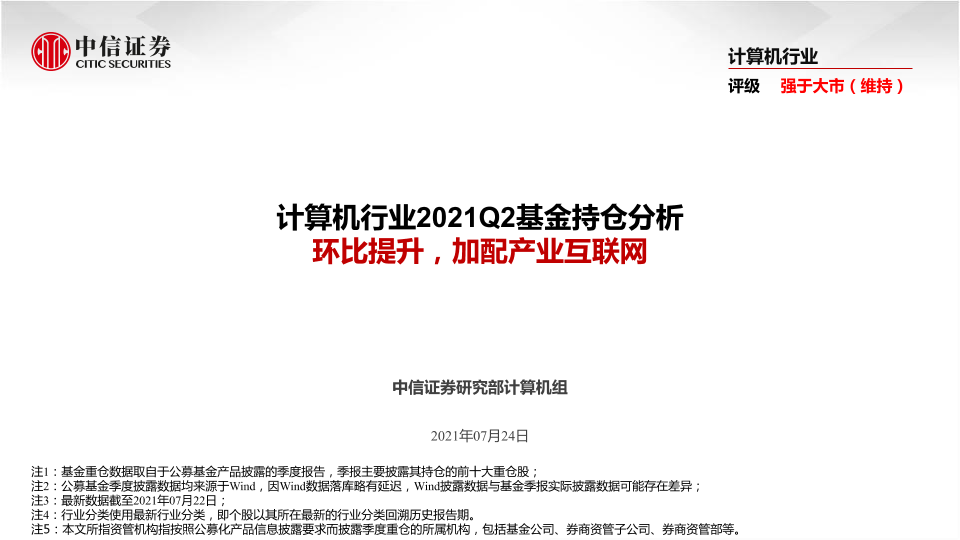 【中信证券】【20210724】计算机行业2021Q2基金持仓分析:环比提升,加配产业互联网-15页