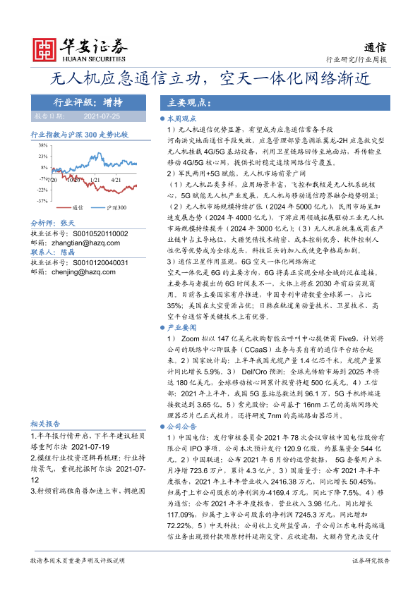 【华安证券】【20210725】通信行业周报:无人机应急通信立功,空天一体化网络渐近-20页