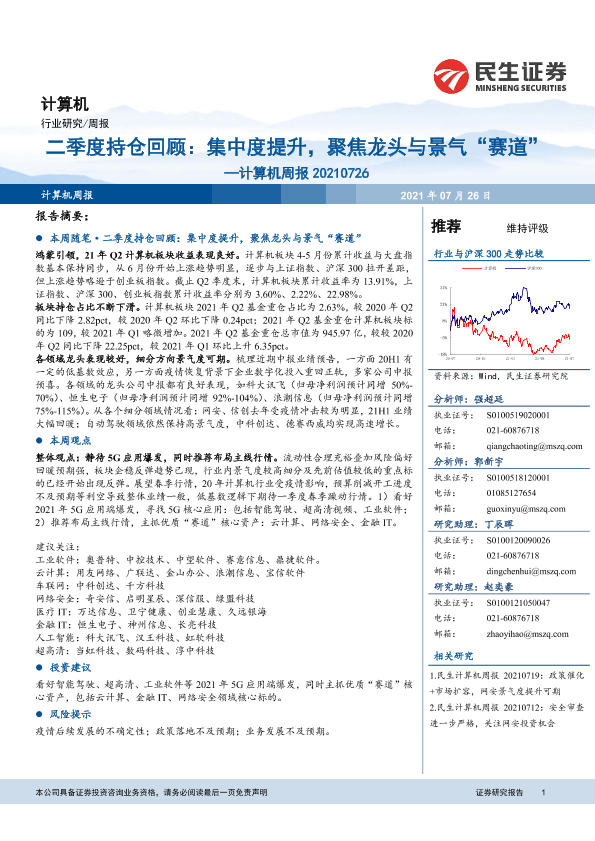【民生证券】【20210726】20210726-民生证券-计算机周报:二季度持仓回顾:集中度提升,聚焦龙头与景气“赛道”-18页