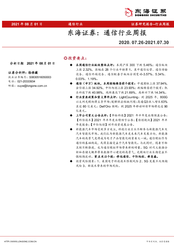 【东海证券】【20210801】20210801-东海证券-通信行业周报-6页