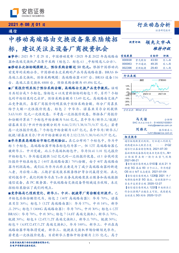 【安信证券】【20210801】20210801-安信证券-通信行业动态分析:中移动高端路由交换设备集采陆续招标,建议关注主设备厂商投资机会-5页