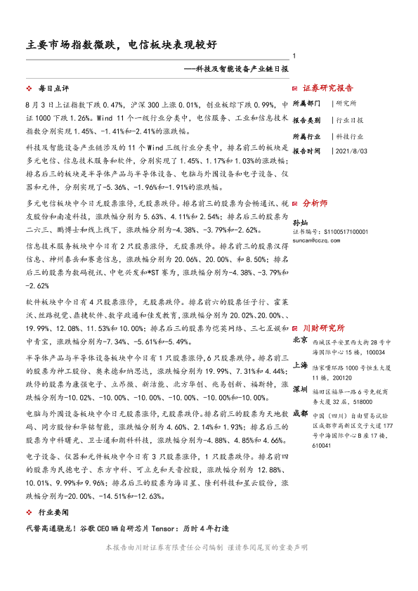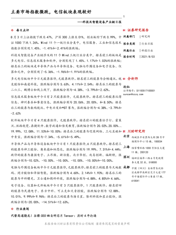 【川财证券】【20210803】科技及智能设备产业链日报-3页
