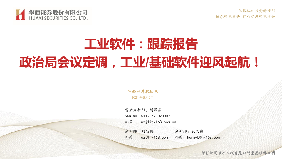 【华西证券】【20210803】工业软件:跟踪报告政治局会议定调,工业基础软件迎风起航!-10页