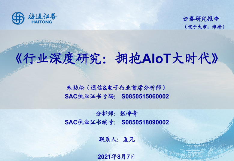 【海通证券】【20210807】行业深度研究:拥抱AIoT大时代-53页