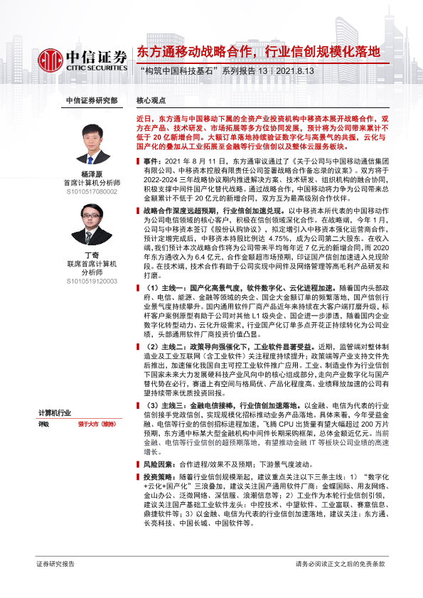 【中信证券】【20210813】东方通移动战略合作,行业信创规模化落地-3页