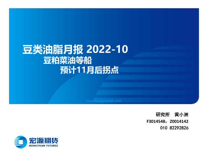 【宏源期货】【20220930】豆类油脂月报:豆粕菜油等船,预计11月后拐点-30页
