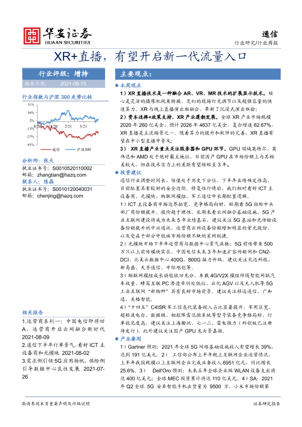 【华安证券】【20210815】20210815-华安证券-通信行业周报:XR+直播,有望开启新一代流量入口-17页