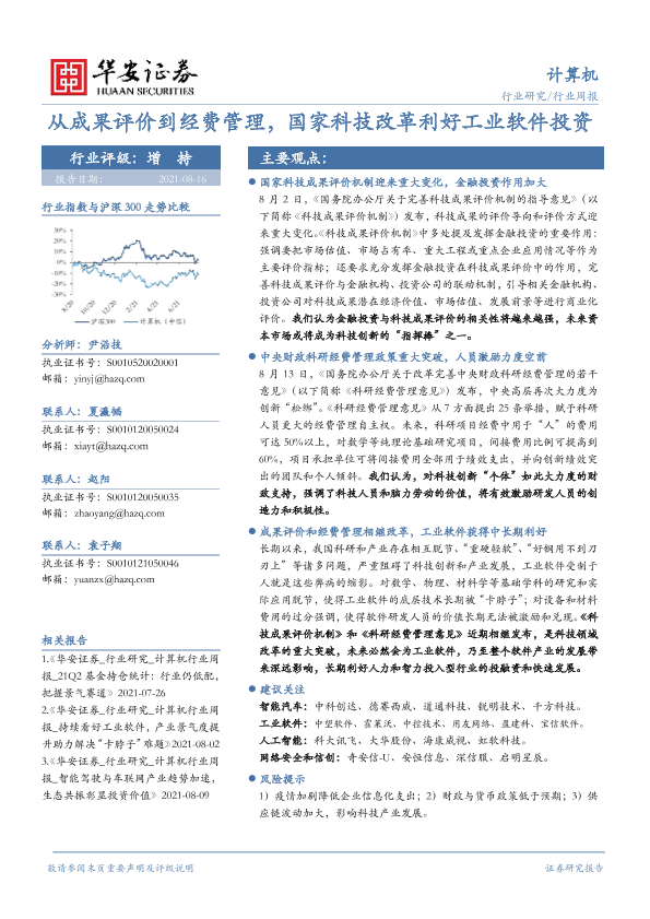 【华安证券】【20210816】从成果评价到经费管理,国家科技改革利好工业软件投资-15页