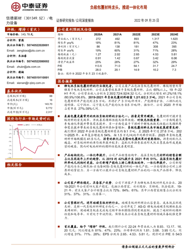 【中泰证券】【20220925】负极包覆材料龙头,推进一体化布局-25页