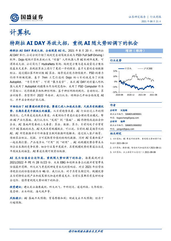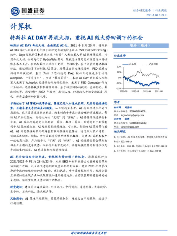 【国盛证券】【20210821】计算机行业周报:特斯拉AI DAY再放大招,重视AI随大势回调下的机会-18页