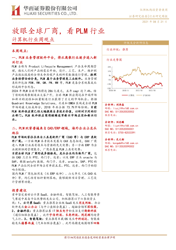 【华西证券】【20210821】20210821-华西证券-计算机行业周观点:放眼全球厂商,看PLM行业-30页
