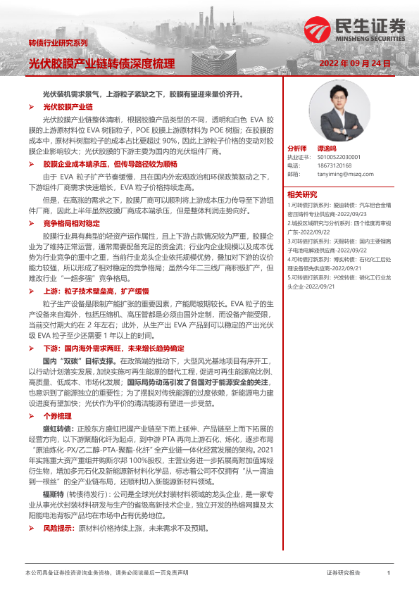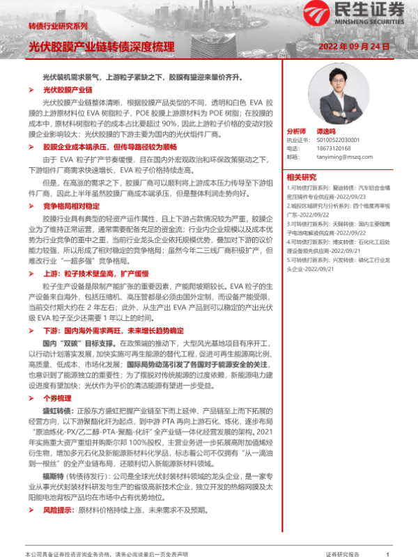 【民生证券】【20220924】转债行业研究系列:光伏胶膜产业链转债深度梳理-23页