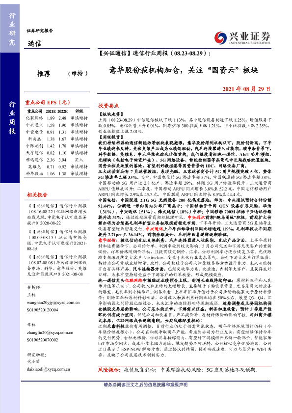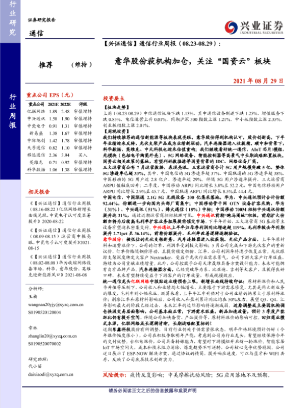 【兴业证券】【20210829】通信行业周报(08.23-08.29):意华股份获机构加仓,关注“国资云”板块-25页