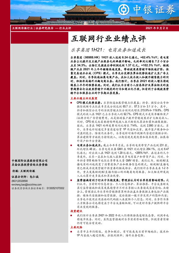 【中银证券】【20210902】互联网行业业绩点评:乐享集团1H21:电商业务加速成长-3页