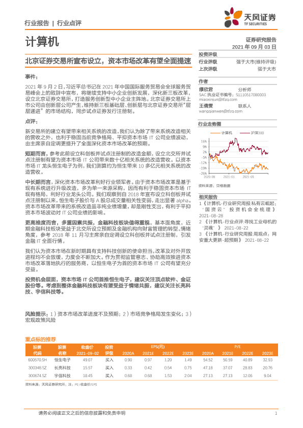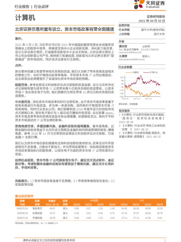 【天风证券】【20210903】计算机行业点评:北京证券交易所宣布设立,资本市场改革有望全面提速-2页