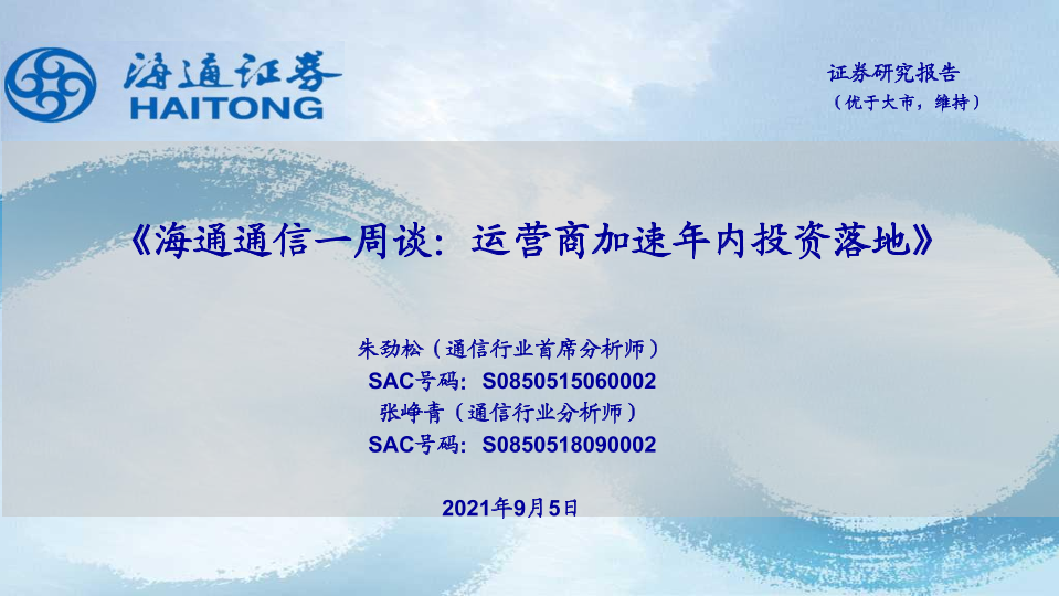 【海通证券】【20210905】海通通信一周谈:运营商加速年内投资落地-12页