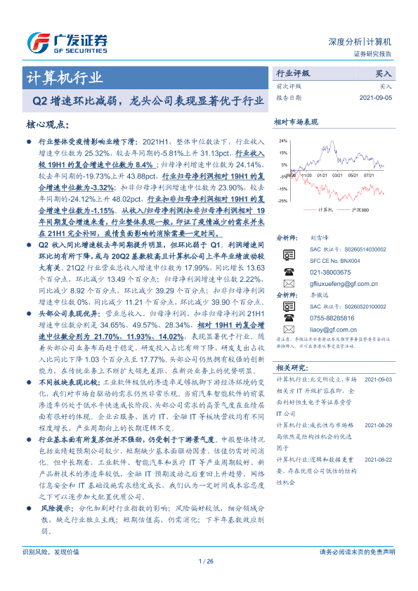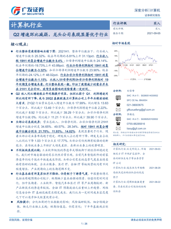 【广发证券】【20210905】计算机行业:Q2增速环比减弱,龙头公司表现显著优于行业-26页