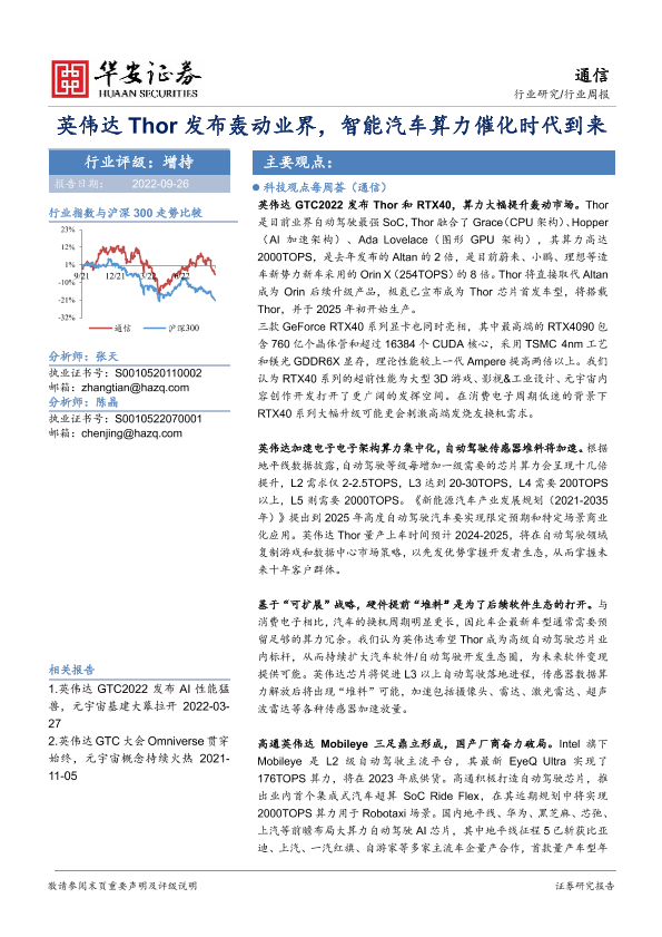 【华安证券】【20220926】通信行业周报:英伟达Thor发布轰动业界,智能汽车算力催化时代到来-20页
