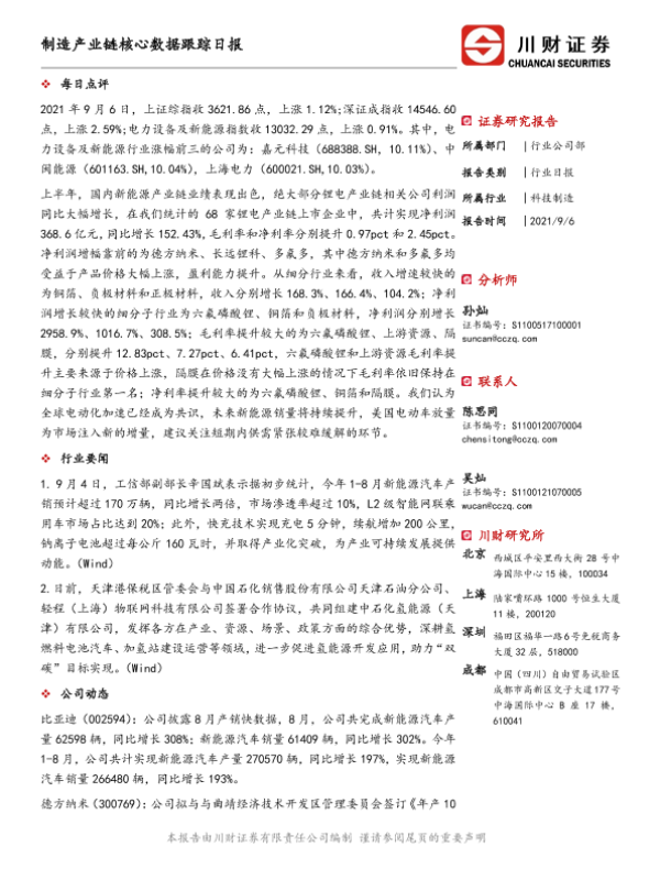 【川财证券】【20210906】制造产业链核心数据跟踪日报-5页