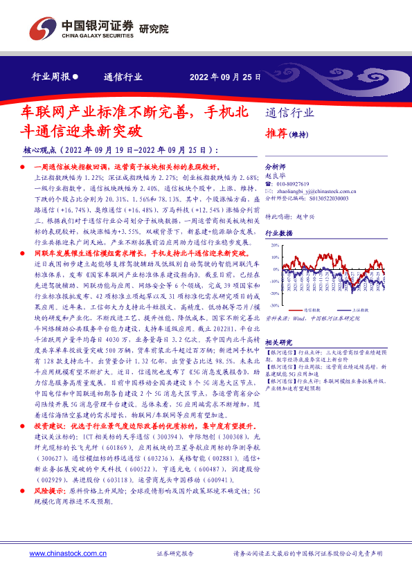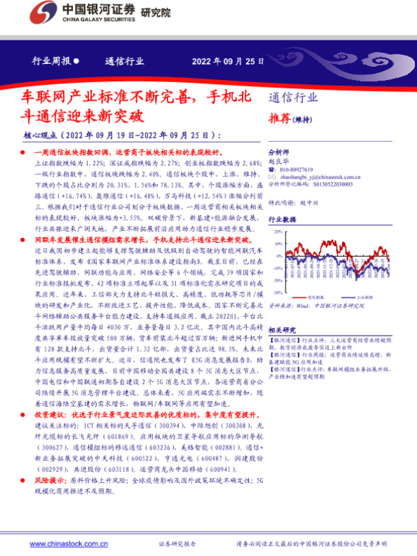 【银河证券】【20220925】通信行业周报:车联网产业标准不断完善,手机北斗通信迎来新突破-18页