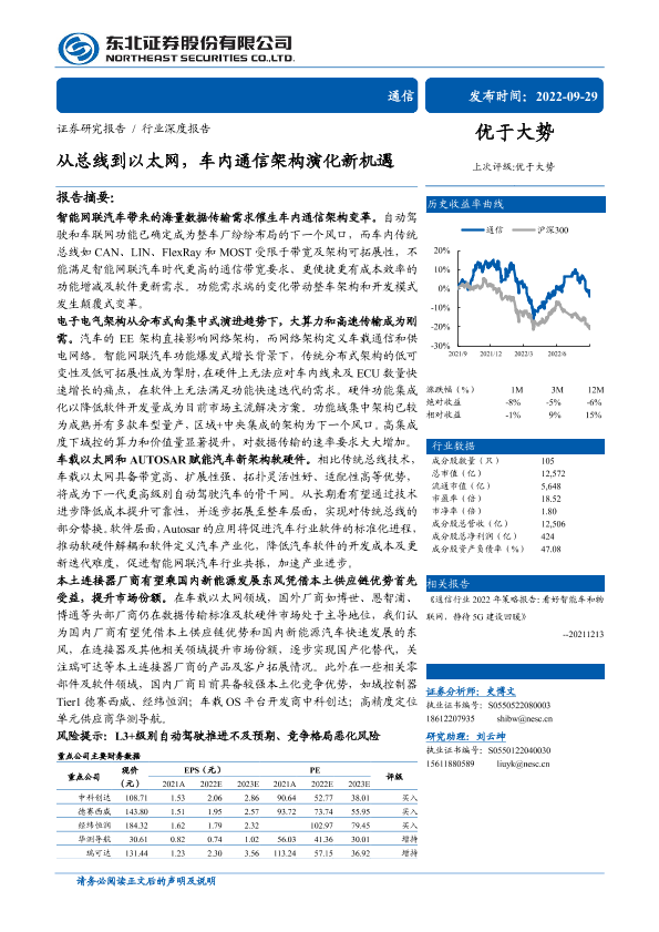 【东北证券】【20220929】从总线到以太网,车内通信架构演化新机遇-68页
