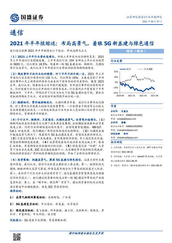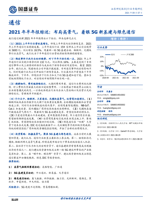 【国盛证券】【20210907】通信2021年半年报综述:布局高景气,着眼5G新基建与绿色通信-23页