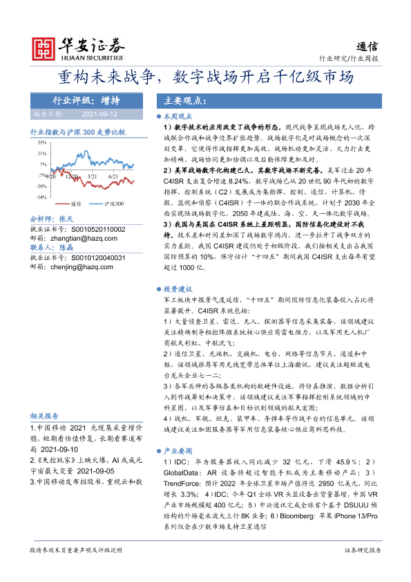 【华安证券】【20210912】20210912-华安证券-通信行业周报:重构未来战争,数字战场开启千亿级市场-17页