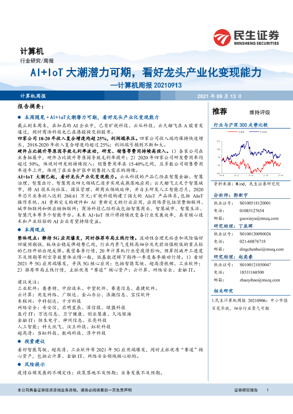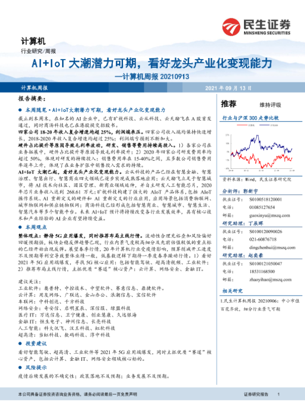 【民生证券】【20210913】20210913-民生证券-计算机周报:AI+IoT大潮潜力可期,看好龙头产业化变现能力-18页
