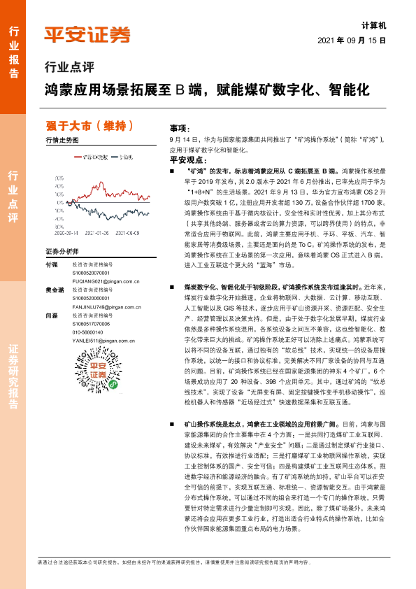【平安证券】【20210915】计算机行业点评:鸿蒙应用场景拓展至B端,赋能煤矿数字化、智能化-3页