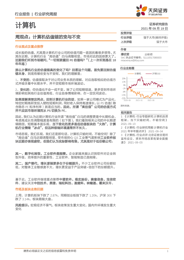 【天风证券】【20210919】计算机周观点:计算机估值锚的变与不变-6页