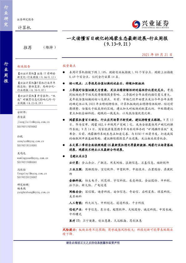 【兴业证券】【20210921】一文读懂百日破亿的鸿蒙生态最新进展-行业周报 (9.13-9.21)-27页