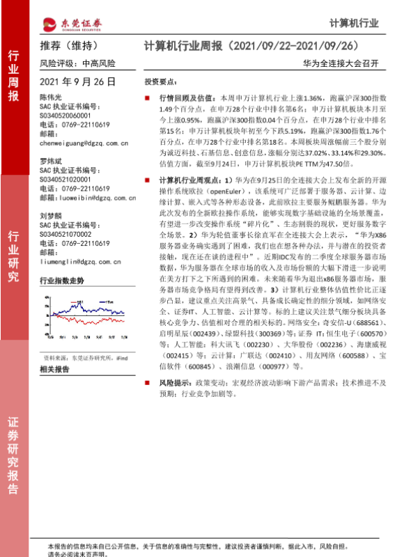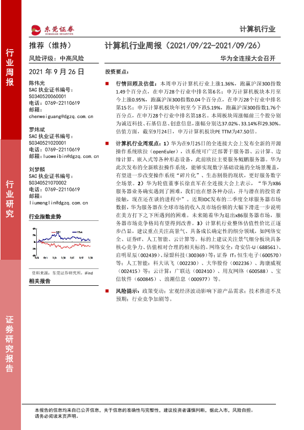 【东莞证券】【20210926】20210926-东莞证券-计算机行业周报:华为全连接大会召开-10页