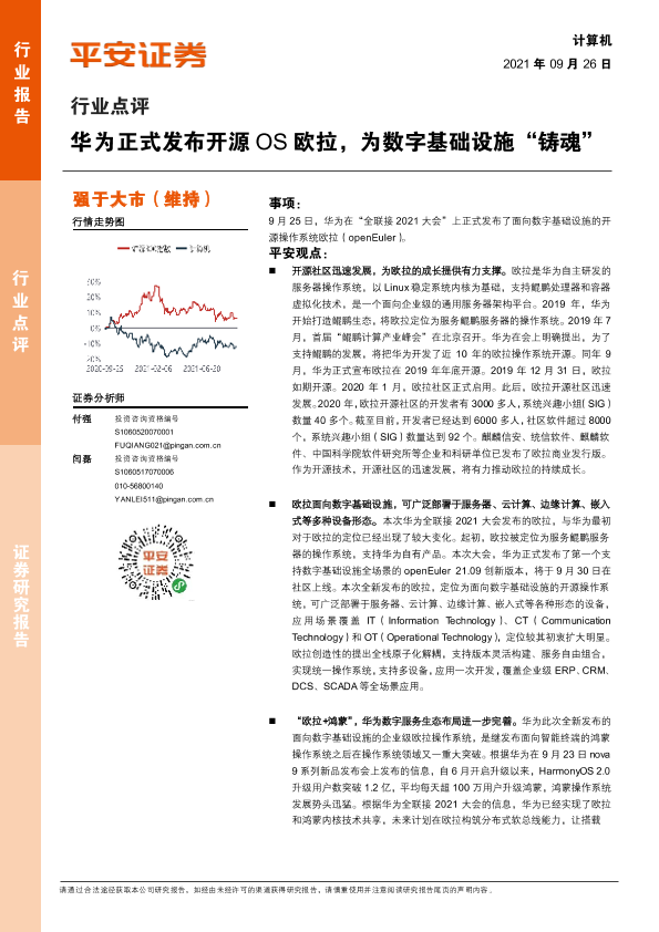 【平安证券】【20210926】计算机行业点评:华为正式发布开源OS欧拉,为数字基础设施“铸魂”-3页