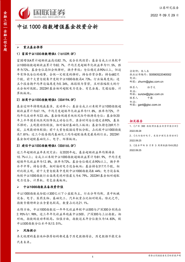【国联证券】【20220929】金融工程专题:中证1000指数增强基金投资分析-21页