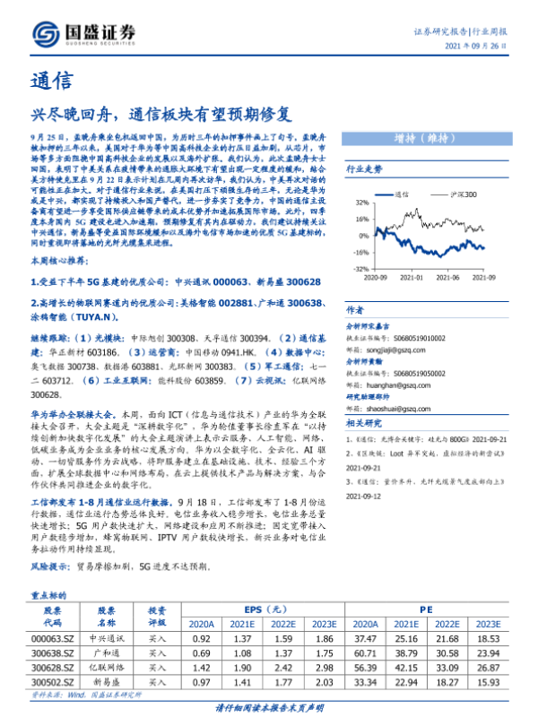 【国盛证券】【20210926】通信行业周报:兴尽晚回舟,通信板块有望预期修复-16页