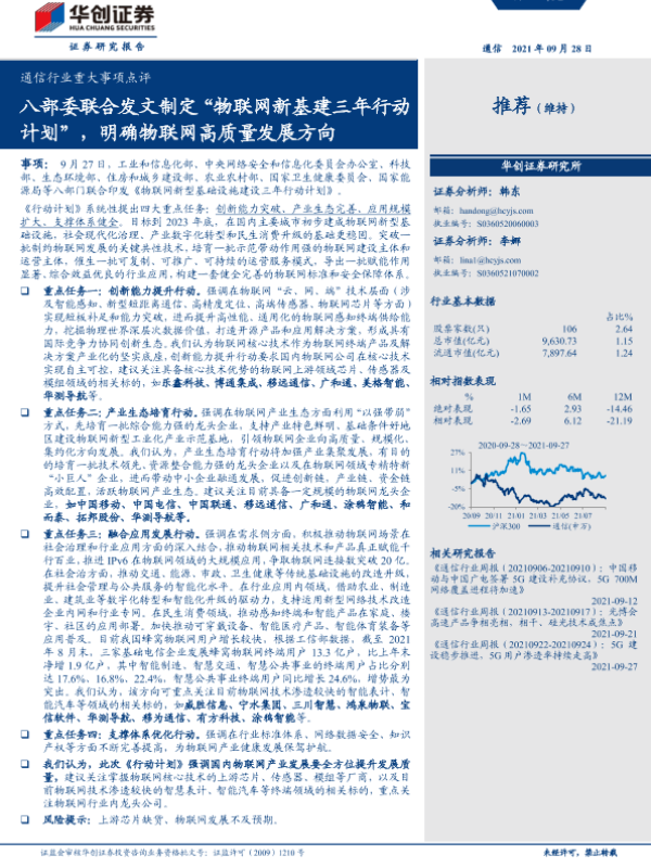 【华创证券】【20210928】通信行业重大事项点评:八部委联合发文制定“物联网新基建三年行动计划”,明确物联网高质量发展方向-4页