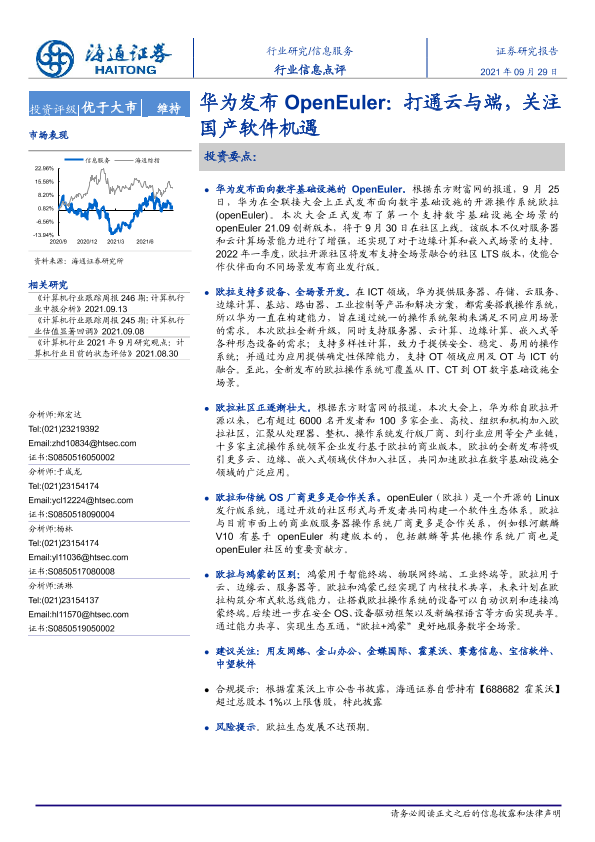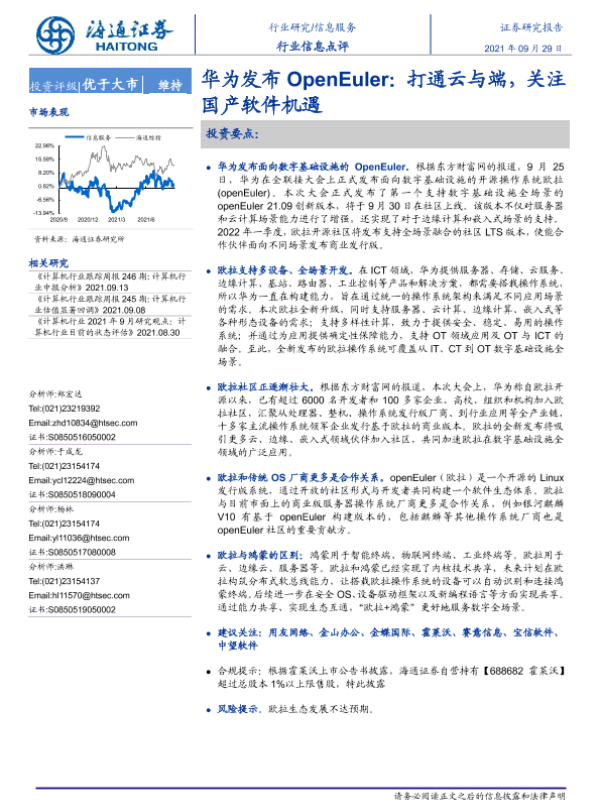 【海通证券】【20210929】信息服务行业信息点评:华为发布OpenEuler:打通云与端,关注国产软件机遇-2页