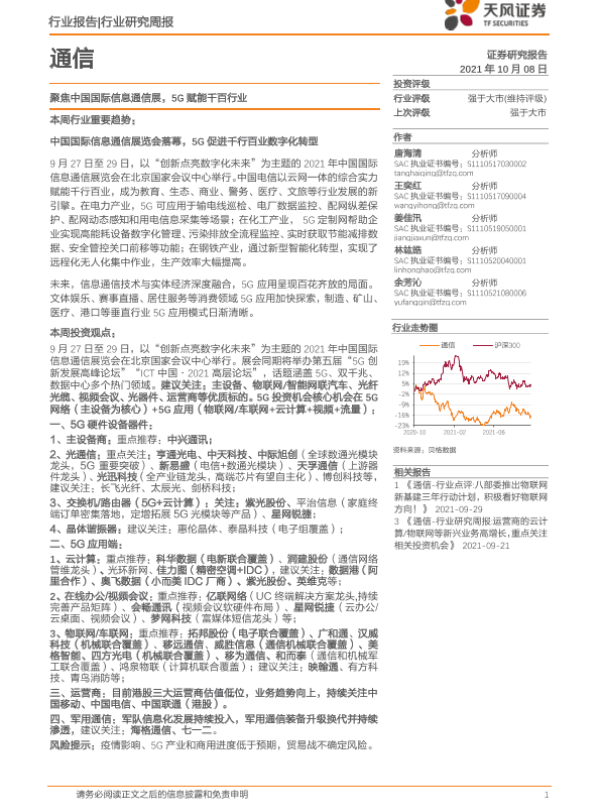 【天风证券】【20211008】20211008-天风证券-通信行业研究周报:聚焦中国国际信息通信展,5G赋能千百行业-17页